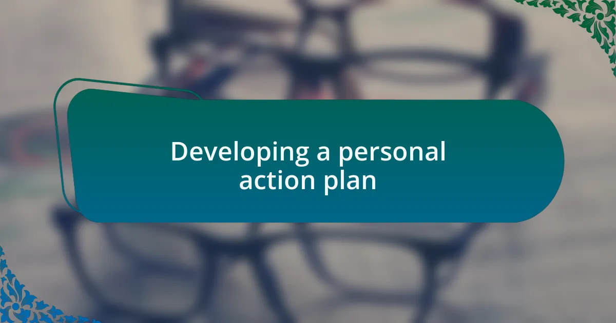 Taking the time to develop a personal action plan can be transformative when faced with anxiety. I recall sitting down one afternoon, pen in hand, and mapping out the specific triggers that heightened my anxiety. That simple act of translating my feelings into written words gave me a clearer understanding of my challenges. Have you ever found that breaking things down like this helps you recognize patterns in your own life?