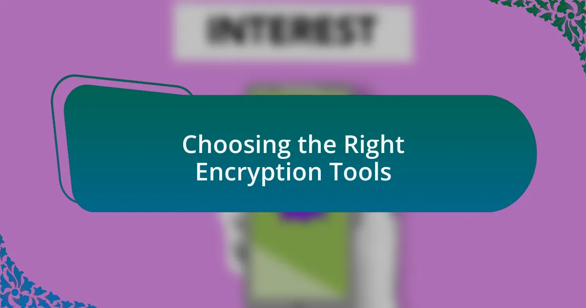 Choosing the right encryption tool can feel daunting, but my experience has showed me how vital it is to pick one that meets your needs. I remember grappling with a particularly complex encryption software that, while powerful, left me feeling overwhelmed. It’s essential to balance security with usability; a tool that feels like a maze can deter even the most committed user. Have you ever felt lost trying to navigate a complicated system?